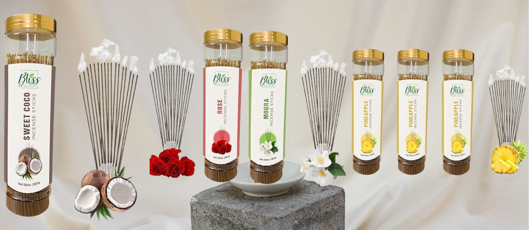 BLISS INCENSE STICKS: Bliss agarbattis are made from natural ingredients and contain 0% charcoal threfore oftern termed as white agarbatti due to being charcoal free. Charcoal-free incense sticks dipped in natural essential oils. The Organic Incense sticks are safe and healthy with low smoke. These are hand made dhoop battis sticks does not hurt the eyes rather purifies and engances the aroma in the room which calms the mind